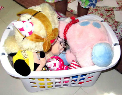 3. We put all the dolls in one laundry basket. Each girl took turn to be blind folded and had to look for her doll by touching. This time, every girl got a prize coz ofcourse it was an easy game. But surely this game was the biggest hit.